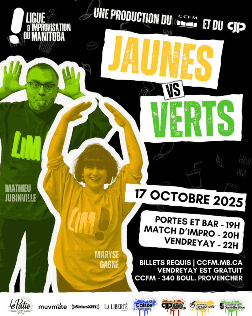 The LIM season continues with its second match on October 17 at the CCFM, in the Antoine-Gaborieau Hall! The Yellows will face off against the Greens in a showdown full of energy and surprises. Come cheer on your favorite players and enjoy an evening bursting with colors and laughter. Tickets are already on presale starting at $ 7.75. And that’s not all! After the selection match, the CJP invites you at 10:15 PM for a free Vendreyay packed with games and karaoke, with free admission.