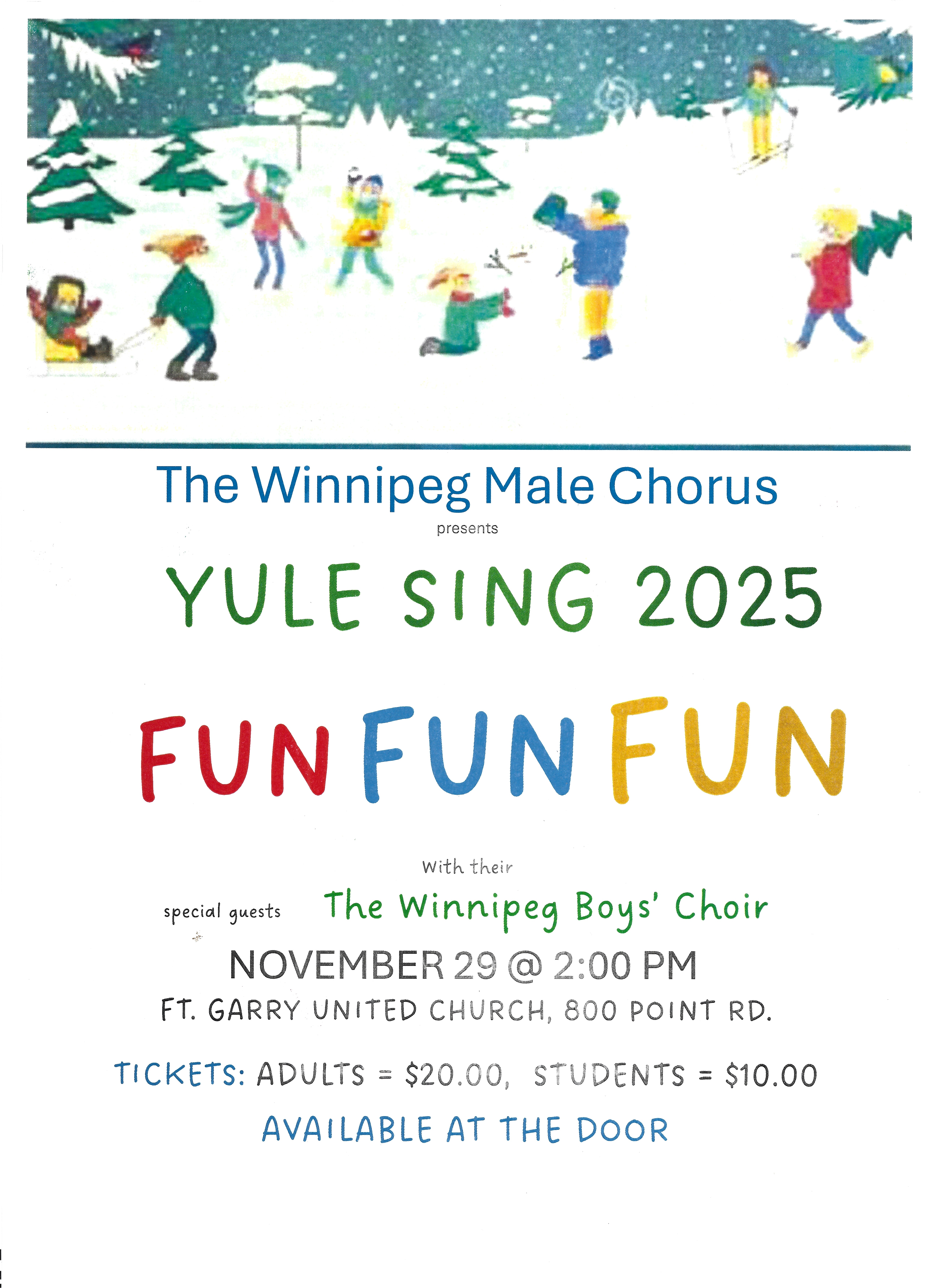 Winnipeg, MB — November 29, 2025 — Get ready for Fun, Fun, Fun! this holiday season as the Winnipeg Male Chorus (WMC) presents its much-loved Annual Yule Sing Concert — now in its 65th year, joined by the Winnipeg Boys Choir, celebrating an incredible century of song.