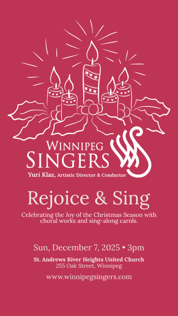 Come celebrate the joy of the Christmas Season — Sing and Rejoice with this Winnipeg Singers concert, directed by Yuri Klaz!