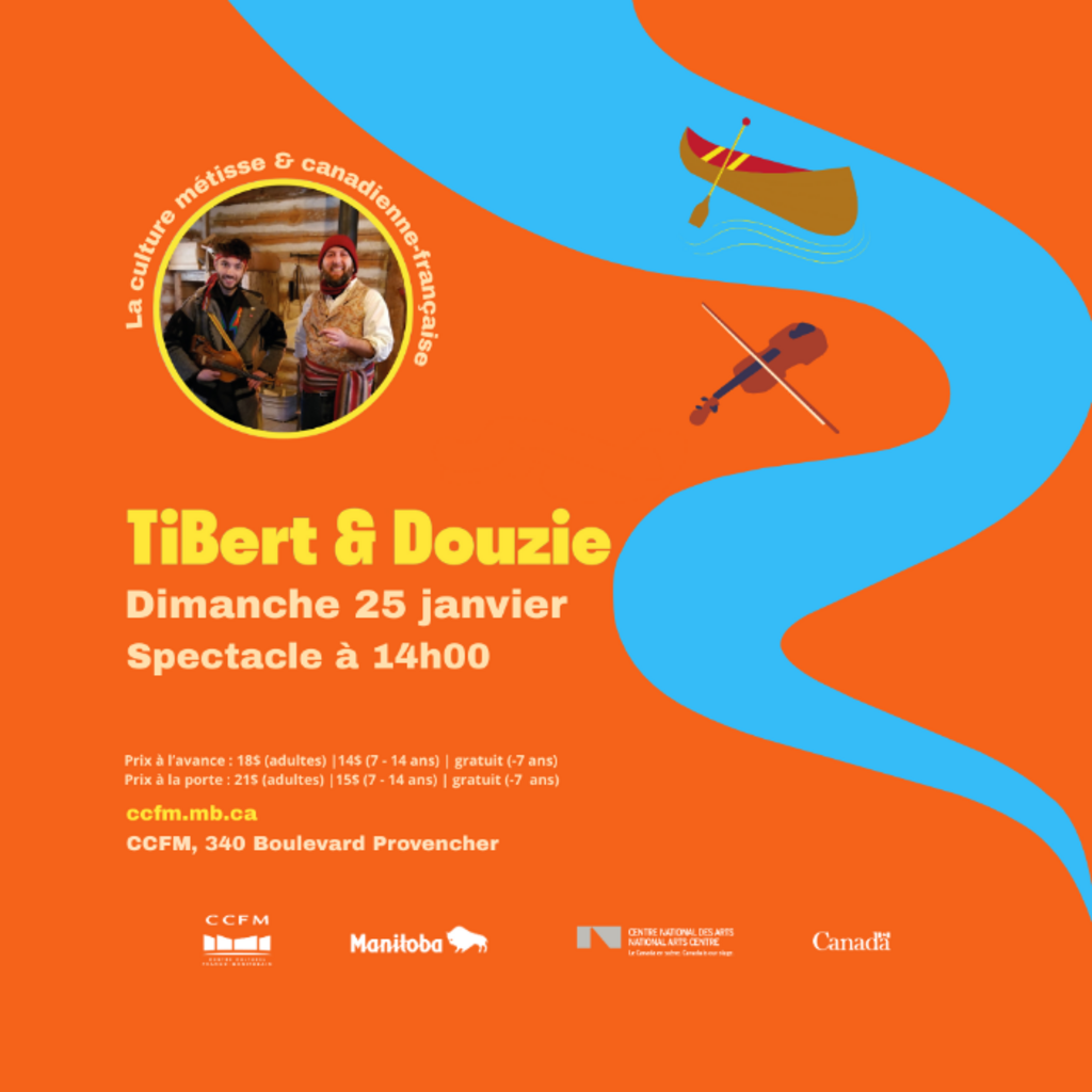 Le 25 janvier à 14h, le conteur, jongleur et musicien, TiBert, se joint au maître du violon, Douzie, pour emmener des petits voyageurs dans leur canot imaginaire à la découverte de la culture métisse et franco-canadienne.
